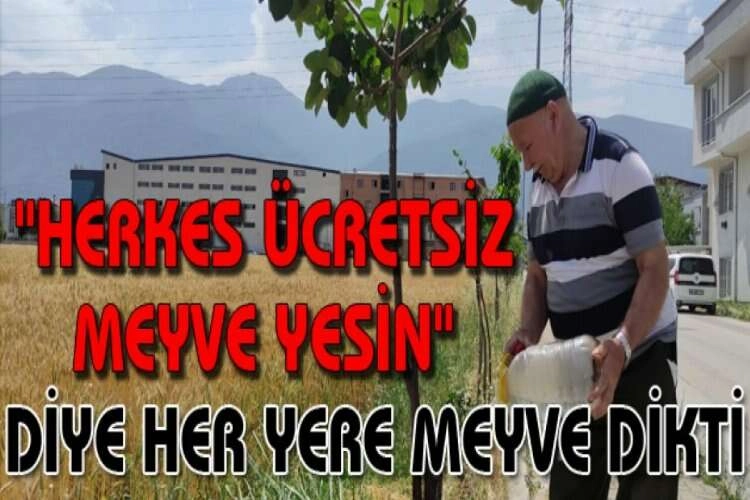 Tesisat işinden emekli olduktan sonra kendini hayır işlerine adayan Sadık Kocaoğlu, (65) 5 yıldır şehri sokak sokak gezip yol kenarlarına meyve fidanı dikiyor. Bu zamana kadar 250 kadar fidan diken hayır sever vatandaş ektiği fidanları sıcak havada doldurduğu bidonlarla kurumasın diye suluyor. Kocaoğlu'nun Bursa'da yetişen onlarca çeşit meyveden yiyen vatandaşlar kendisine hayır dua ediyor. Kocaoğlu ölene kadar bu işi yapacağını ifade ederken, vatandaşlar da bu işten büyük zevk alıyor. Bu işi severek yaptığı ifade eden Sadık Kocaoğlu, "5 yıldır sokak sokak gezip yol kenarlarına meyve fidanı dikiyorum. Yıldırım ilçesinde yol kenarlarına 250 adet meyve fidanı diktim. Onlarca çeşit meyve ağacı var, herkes bu meyvelerden faydalansın istiyorum. Ektiğim bu meyve ağaçlarını "kurumasın" diye doldurduğum bidonlarla her gün suluyorum. Bu işten büyük keyif alıyorum. Öldüğümüz zaman ardımızdan bize sevap yazacak hayır işleri bırakmayı istiyorum. Herkes bu meyvelerden yesin, bize hayır dua etsin yeter" dedi.