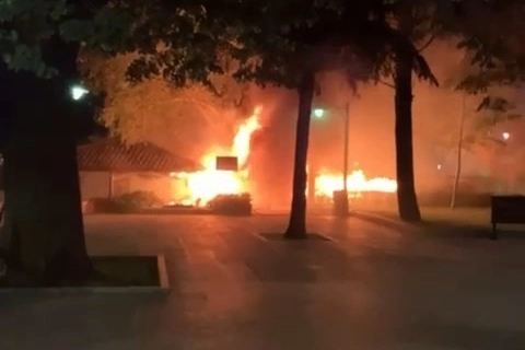 Bursa'da tarihi Çekirge Semti'nde 1.Murat Hüdavendigar Camisi'nin bahçesindeki çay bahçesi dün geceki yangında küle döndü. Alevler itfaiye ekipleri tarafından söndürülürken, sabah küle dönmüş malzemeler çalışanlar tarafından toplandı.