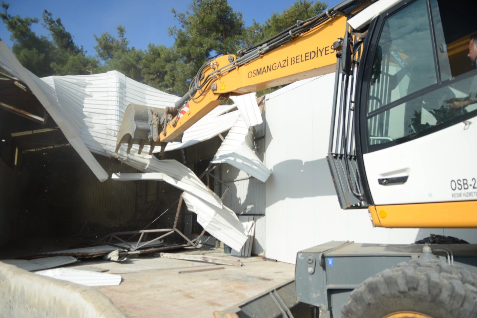 Osmangazi Belediyesi, tarım arazileri üzerine imara uygun olmayan şekilde inşa edilen yapıları yıkmayı sürdürüyor. Verimli toprakların yeniden tarımsal faaliyetlere kazandırılması için tarım arazileri üzerine imara uygun olmayan şekilde inşa edilen konut, işyeri, fabrika ve depo gibi yapıların tespitini yapan Yapı Kontrol Müdürlüğü ekipleri, son olarak Ovaakça Santral Mahallesi’nde tarım arazisi üzerine inşa edilen iki fabrikayı yıktı.