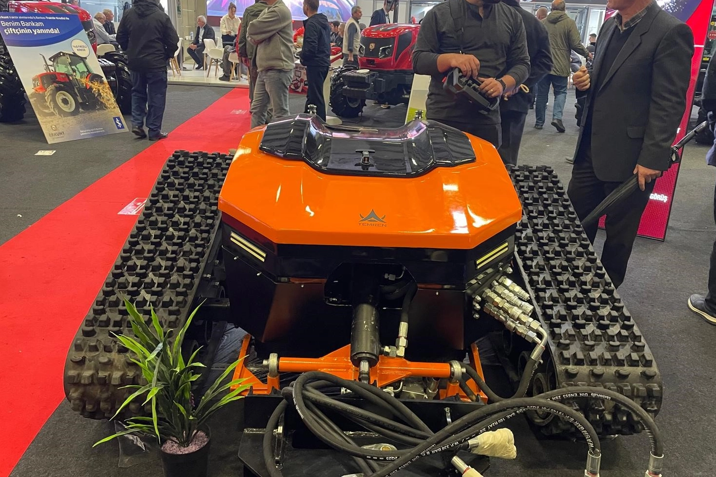 Traktörler ve teknolojik ürünlerin sergilendiği Bursa Tarım Fuarı'nda uzaktan kumandalı tarım makinesi genç yaşlı tüm çiftçilerin ve alım heyetlerinin ilgisini çekti. Tarlada traktörün yapabildiği birçok şeyi rahatlıkla başarabilen bu makine, savaş alanında silah olarak kullanılabiliyor, sağlıkta hasta taşımada, belediyelerde ise park ve bahçe temizliğinde değerlendirilebiliyor. Yıllardır savunma sanayisine üretim yapan ve son 2 yıldır tarım sektörüne de giren Ankara merkezli firmanın Ar-Ge Mühendisi Mahmut Bedirhan Arslan, bu ürünün tamamen Türk mühendisler tarafından tasarlandığını söyledi. En küçük parçasına kadar üretiminin de yerli olduğunu vurgulayan Arslan, şöyle konuştu: "Tasarım ve üretimini kendi fabrikamızda yaptık. Tarlada traktörün yapabildiği herşeyi yapabiliyor. Önündeki askı kollarına herşey bağlanabiliyor. Belediyeler süpürge, kar küreme aparatı bağlayabiliyor. Park ve bahçelerde gübreleme yapabiliyorlar. Arkasında bir tona yakın ağırlık askıları var. Önünde de bir tona yakın ağırlık kaldırabilirler. Tarla işleri için ne isterseniz bağlayın."