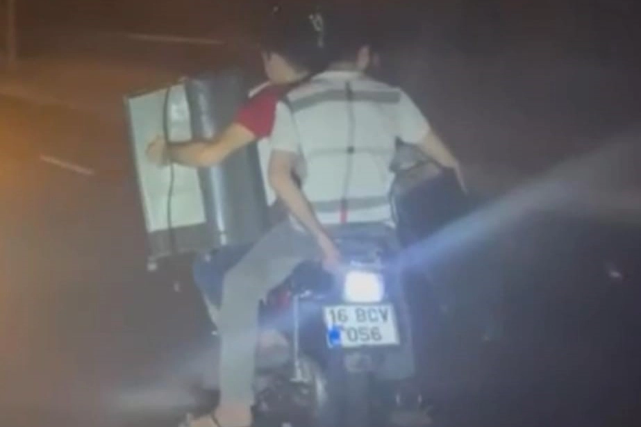 Bursa'da motosiklet ile trafiğe çıkan bir sürücü 3 kişi yolculuk yaptığı yetmezmiş gibi bir de arkadaşına yük taşıttı.