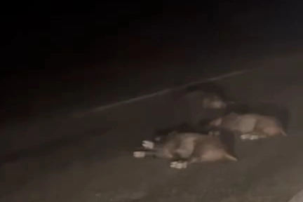 Telef olan domuzları yoldan geçen vatandaş görüntüledi. Bursa’da Orhaneli Yolu üzerinde gece saatlerinde seyreden bir araç, yola aniden atlayan domuz sürüsüne çarptı.