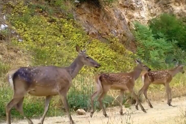 Bursa'nın zirvesi Uludağ'da fotokapana takılan kızıl geyik ailesinin doğa gezisi böyle kaydedildi.