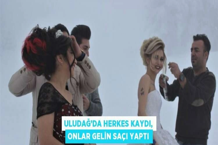 Bursa’da iki kuaför kardeş, Uludağ’da eksi 5 derecede gelin saçı yaptı.