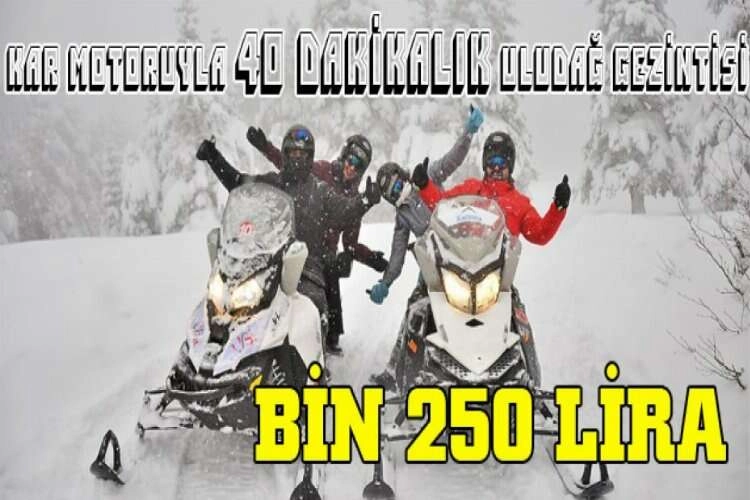 İkinci oteller bölgesinde kar motoru kiralayan Uludağ Spor İşletmeleri yağan karla birlikte muhteşem manzaralar sunan dağın güzelliklerini 1 metreyi aşan kar sebebiyle gezemeyen turistleri kar motorlarıyla götürüyor. Turistler kiraladıkları kar motorlarıyla 1 metreyi geçen karda ormanların içinde yolculuk ederken muhteşem manzaraları görmenin keyfini yaşıyor. 6 kilometrelik parkurda kar motoruyla ilerleyen turistler 40 dakikalık yolculuk sonunda iki kişi binebildikleri kar motoruna bin 250 lira ücret ödüyor. Uludağ'ın muhteşem manzaralarının keyfini çıkartan turistlerin mutluluğu yüzlerinden okunuyor. Uludağ'ın güzelliklerini kar motoruyla turistlere gösterdiklerini ifade eden Uludağ Spor İşletmeleri Operasyon Müdürü İbrahim Garip, "Burada 90 tane kar motorumuz var, buraya gelen misafirler kiraladıkları motoru kendileri kullanıyor. Biz de önlerinde rehber eşliğinde onlara yolu gösteriyoruz. 6 kilometrelik parkurumuz var, ormanların içinde otantik bir ortamda misafirleri keyifle gezdirip getiriyoruz. Kar motoruyla tur yapan herkes turdan memnun ayrılıyor. 40 dakikalık yolculuk ücretini ise bin 250 lira olarak belirledik. Motoru kiralayan kendi kullanıyor. Kar motorlarına iki kişi binebiliyor" dedi.