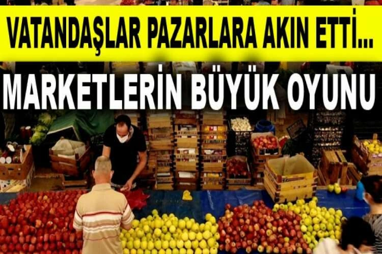 İçişleri Bakanlığınca 81 il valiliğine gönderilen genelge kapsamında pazar yeri esnafı bugün tezgahlarını açtı. Tam kapanma döneminde 8 ve 15 Mayıs Cumartesi günleri 10.00-17.00 saatleri arasında sadece yaş sebze/meyve ile fide satışı yapan pazar yerlerinin açılmasına izin verilmesinin ardından pazarcılar sabah saatlerinde tezgahlarını açarak satışa başladı. Bursa’nın 17 ilçesinde 125 pazarda kurulan tezgahlar doldu taştı. 8 gündür evden çıkmayan sadece marketten alışveriş yapan vatandaşlar da pazarlara akın etti. Bursa Valisi Yakup Canbolat, Osmangazi Belediye Başkanı Mustafa Dündar, Bursa Pazarcılar Odası Başkanı Refik Aksu ve yetkililer, açılan pazarlarda denetim yaptı. HES kodu, ateş ve maske kontrolüyle alınınca bazı pazarlarda uzun kuyruklar oluştu. Vatandaşların çoğu pazarların açılmasının mutlulukla karşılarken, kimi ise fiyatların yüksek olmasından yakındı. Pazarlarda yine yer almaktan duydukları mutluluğu dile getiren Bursa Pazarcılar Odası Başkanı Refik Aksu, marketlerin fiyat oyununa tepki gösterdi. Aksu, “Bizler vatandaşlar için elimizden geleni yapmaya çalışıyoruz. Onlar için en taze ve güzel meyvesinden sebzesine kadar seçerek alıyoruz. Ancak bizim kapalı olduğumuz bu bir haftada marketlerde 12 lira olan domatesi, pazarların açıldığı gün 5 liraya düşürebiliyor. Madem bu domatesi 5 liraya düşürebiliyorsan, niye pazarların kapalı olduğu günde o fiyata indirmiyorsun. Salatalık 6-7 liradan satılırken, bugün 2 liradan nasıl satabiliyorsunuz. Bu marketler halkını hiç düşünmüyor” diye konuştu. Pazarcının sahtekar konumunun hallerden kaynaklandığını ifade eden Aksu, “Günübirlik açılışlarda hallerde ürünler bir gün önce 3 lirayken, talep arza göre, bir gün sonra 2 katına çıkabiliyor. Bu da bizi zor durumda bırakıyor. Biz önümüzdeki günlerde eğer pazarlarımız yine bu şekilde açılacak olursa, biz pazarları açmayı düşünmüyoruz. Önümüzdeki hafta açılacak Pazarlar, bayramın üçüncü gününe denk geliyor. Kimse bayramda ürün toplamaz, kimse bayramda pazara çıkıp alışveriş yapmaz. Biz bayramdan önce pazarların tekrar açılmasını ancak 2 veya 3 gün olmasını istiyoruz” dedi.