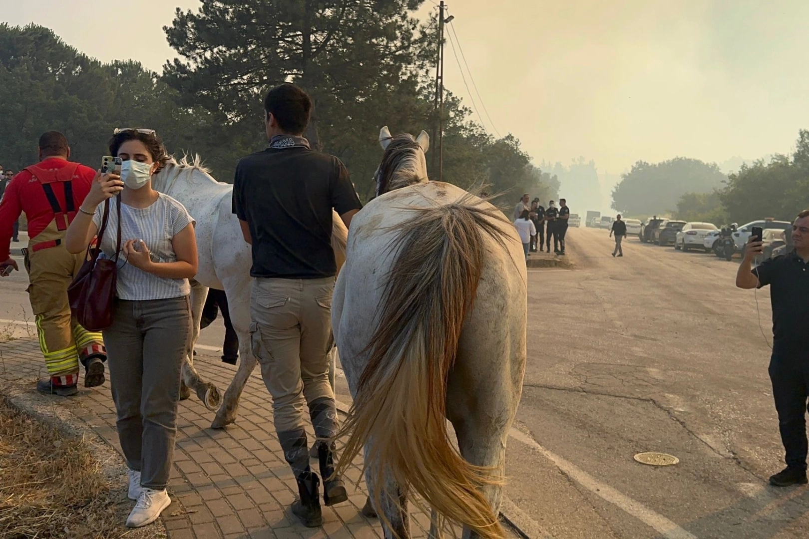 Öte yandan, yangın nedeniyle birçok hayvan telef olurken, alevlerin tehdit ettiği Uludağ Üniversitenin Veteriner Fakültesinde bulunan binicilik atları kontrollü şekilde kurtarıldı. O anlar kameraya yansırken, söndürme çalışmaları devam ediyor.