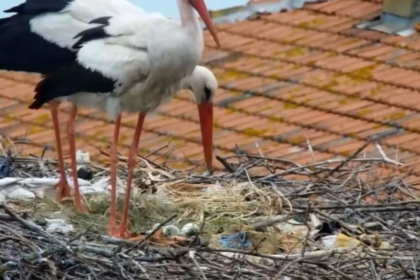 Bursa'nın Karacabey ilçesinde balıkçı Adem Yılmaz ile kurduğu dostluk hikayesiyle milyonların gönlüne taht kuran Yaren leylek ile eşi Nazlı'nın iki yavrusu yumurtadan çıktı.