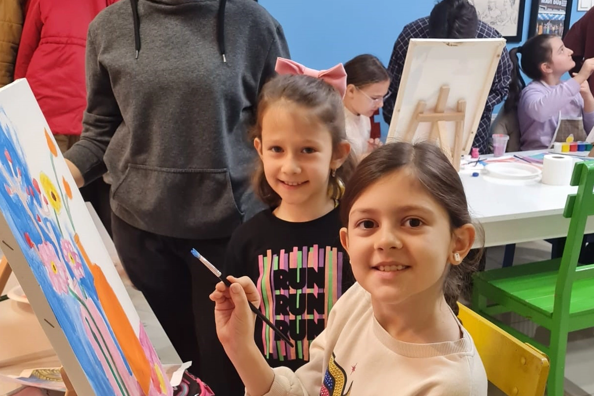 Bursa'nın Yenişehir ilçesinde sömestr tatilinde resim yapmayı öğrenen çocuklar keyifli vakit geçiriyor.