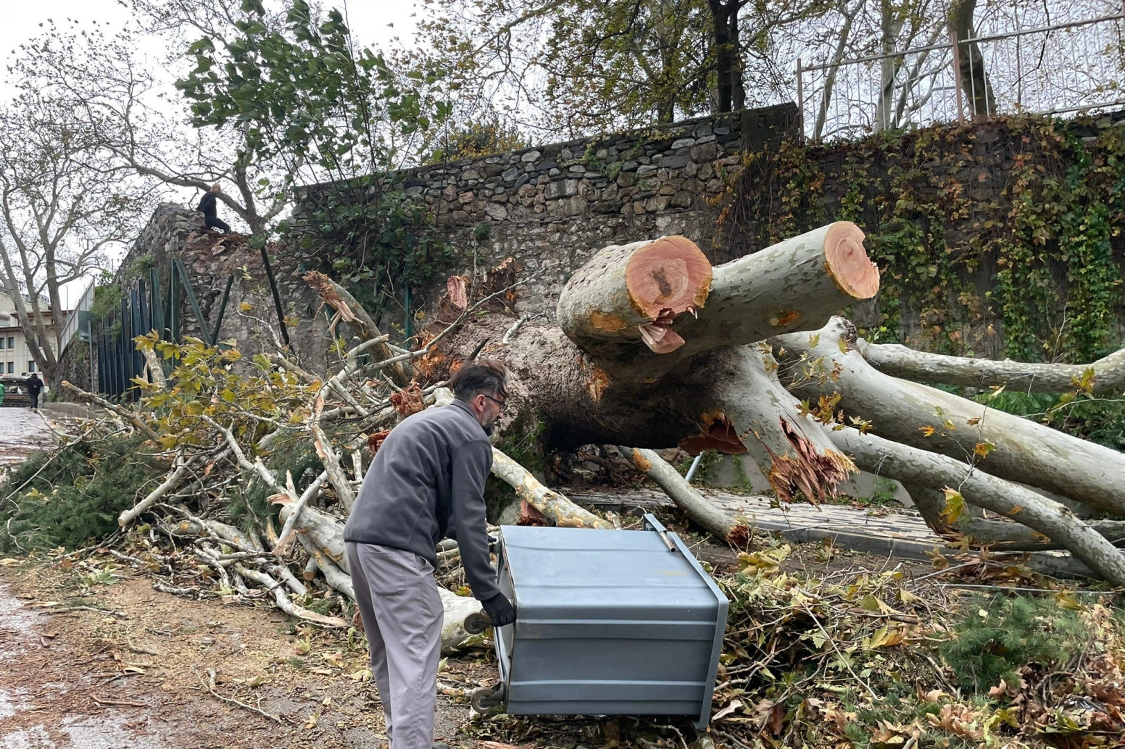 Devasa duvarı aşıp yola devrilen çınar ağacı yolu kapattı. Belediye ekipleri çınarı keserek yolu trafiğe açtılar. Tescilli anıt eser olan çınarın devrildiği esnada yoldan kimsenin geçmemesi ise muhtemel faciayı önledi.
