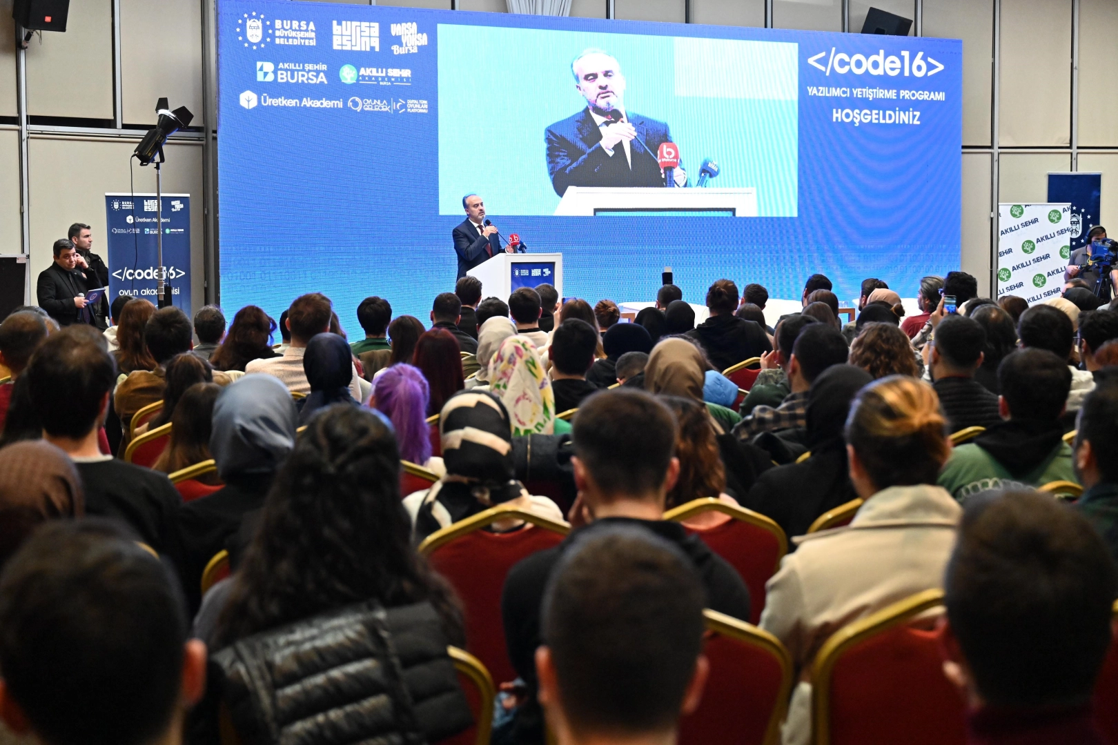Akıllı şehircilik alanında sürdürülebilir insan kaynağının yetiştirilmesi, aynı zamanda yerli ve millî teknoloji üretilmesi amacıyla birçok projeyi hayata geçiren Bursa Büyükşehir Belediyesi, girişimcilerin bilgi teknolojileri alanındaki kapasitelerini geliştirerek hem Bursa hem de Türkiye ekonomisine katkı sağlaması amacıyla Code 16 Yazılımcı Geliştirme Programı’ eğitimlerine start verdi. Atatürk Kongre Kültür Merkezi’ndeki tanıtım toplantısına, Bursa Büyükşehir Belediye Başkanı Alinur Aktaş’ın yanı sıra eğitime kabul edilen yüzlerce genç katıldı.