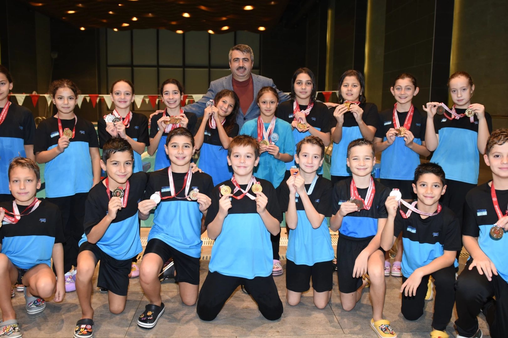 Yıldırım Belediye Başkanı Oktay Yılmaz, 29 Ekim Cumhuriyet Kupası ve 10 Kasım Atatürk’ü Anma Yüzme Yarışlarında takım olarak tüm kategorilerde şampiyon olan Yıldırım’ın altın kulaçlarıyla buluştu.