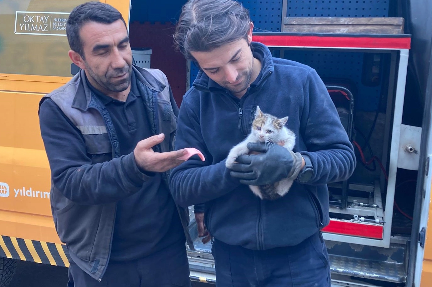 Bursa'da park halindeki bir aracın kaput bölümüne sıkışan yavru kedi, Yıldırım Belediyesi ekiplerince kurtarılarak tedavisi yapılmak üzere Sahipsiz Hayvanlar Rehabilitasyon Merkezi’ne gönderildi.