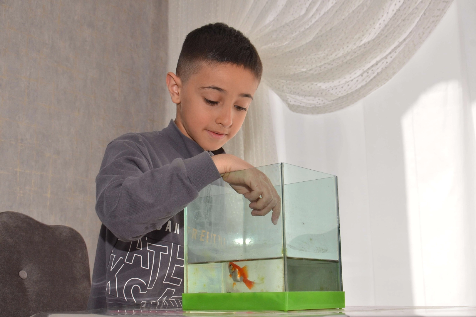 İkinci depremin merkezi Elbistan’da yaşayan Tat ailesi, tek çocukları Enes’in isteği üzerine evlerinde beslemek üzere yaklaşık 1 yıl önce Japon balığı aldı. Cam fanusta baktıkları balığa ‘Necati’ ismini veren aile, 6 Şubat’taki Pazarcık merkezli depreme, Cumhuriyet Mahallesi’ndeki evlerinde yakalandı. İlk depremin ardından dışarı çıkan aile, aynı gün 13.24’teki 7,6 büyüklüğündeki depremi de atlatınca hasar alan evlerine giremedi. Aile, ne eşyalarını ne de balıklarını almak için 6.kattaki dairelerine çıkamadı. Balığın yemsiz kalıp öleceğini düşünen Enes, anne ve babasından itfaiyeye haber vermesini istese de, aile Ağrı’daki yakınlarının yanına gitti. Enes’in, balığından ayrılmanın üzüntüsü ise hiç eksilmedi. Aile, balığın o soğuk ortamda yem yemeden ve suyu değişmeden hayatta kalamayacağı gerçeğini kabullenmeye çalıştı. Depremden 100 gün sonra evlerine geri dönen aile fertlerinin ilk işi, mutfak masası üzerindeki küçük fanustaki balığa bakmak oldu. Anne Ayşe ve oğlu Enes, fanusu kontrol ettiklerinde gözlerine inanamadı. Balığın hayatta olduğunu fark eden anne Ayşe Tat, ölmek üzere olan balığa hemen yem verdi. Balık bir süre sonra fanusun içerisinde yüzmeye başladı. "Yaşaması beni çok mutlu etti" 1 yıldır gözü gibi baktığı Necati’ye tekrar kavuşmanın mutluluğunu yaşayan küçük Enes, “Depremden sonra en çok balığımı merak ediyordum. Gelince ilk önce balığıma koştum. Onu canlı görünce de çok sevindim. Yaşaması beni çok mutlu etti” dedi. İkinci depremin ardından Ağrı’ya gittiklerini ve evlerinden hiçbir şey alamadıklarını hatırlatan Anne Ayşe Tat ise, oğlunun, balığını almak için itfaiyeden yardım istemeleri gerektiğini söylemesine rağmen yukarı çıkamadıklarını kaydetti. Anne Tat, “İlk depremden sonra evimizden ayrıldık. Enes’in bir yıldır baktığı Necati adını verdiğimiz balığı da almadık. Oğlum ilk olarak Necati’yi neden almadık dedi. Tekrar girip alacağımızı söyledim ama ikinci depremi yaşadık. Bu nedenle eve giremedik. Oğlum, ‘Necati yaşıyordu, itfaiyeyi çağır’ diye ağladı. Ama Necati’yi alamadık. Depremden sonra da Ağrı’ya gittik. Bu süre zarfında Necati’ye bakacak kimse yoktu. Ailem de başka şehre gitmişti. Oğlum, orada da ağlamaya devam etti. Yapacak bir şeyin olmadığını söyledim oğluma. 3 aydır da evimize hiç dönmemiştik. Eve geleli iki gün oluyor. Kapıdan ilk girdiğimizde Necati öldü diye düşünüyordum. Enes, gitti Necati’ye baktı ve ‘yaşıyor’ dedi. İnanamadım yaşadığına. Gözlerimle gördüğümde ise sevindik ve mutlu olduk. Rızkı veren de vadeyi veren de Allah” şeklinde konuştu. Japon balıklarının, yem yemediği zaman 4 gün yaşayabildiğini anlatan anne Ayşe Tat, “Bunlar çok nazik canlılar. Normalde 4 gün yaşayabildiklerini biliyorum. 3 aylık süre zarfında yem yememiş, bakımı yapılmamış. Suyu da yarıya inmiş. Geldiğimizde yüzgeci havadaymış. Allah’tan umut kesilmeyecek. Enes, şimdi Necati’nin başından ayrılmıyor. Gidersek de Necati’yi yanımızdan ayırmayacağız. Bu, bize Allah’ın bir hediyesi oldu” ifadelerini kullandı.