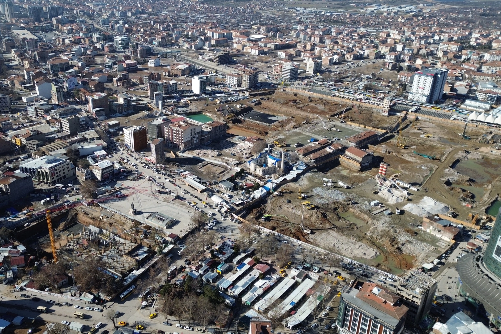 6 Şubat 2023’de yaşanan Kahramanmaraş merkezli depremlerde büyük yıkımın yaşandığı Malatya’da depremden önce çekilen dron görüntüleri ile şimdi çekilen görüntüler, şehirdeki yıkımı da gözler önüne serdi. Asrın felaketinde iki büyük depremden de etkilenen Malatya’da 4 bin 197 bina yıkıldı. Ağır hasar alan 45 binin üzerinde binanın ise şu ana kadar yüzde 97’sinin yıkımı tamamlandı. Şehrin merkezi konumunda olan Yeni Camii çevresindeki yıkımların ardından ise yeni çarşı projesinde çalışmalar aralıksız sürüyor. Depremden yılar önce çekilen dron görüntüsünde şehrin yapı bloku gözükürken, yeni çekilen görüntülerde ise devasa boşluklar göze çarpıyor. Yine 6 Şubat depreminden bir gün sonra çarşı merkezinde çekilen görüntüler ile bugün çekilen görüntüler de karşılaştırıldığında yıkımın ne denli büyük olduğu gözler önüne seriliyor.