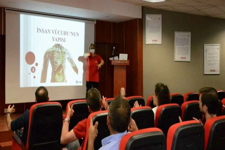 Koçaslanlar Holding Toplantı Salonu’nda düzenlenen eğitimlerde böcek sokması, zehirlenme, boğulma, kazalara müdahale, temel yaşam desteği, koma, şok pozisyonu, kırık çıkık, sıcak çarpması gibi acil durumlarda alınabilecek önlemler ve uygulanabilecek ilk yardım uygulamalarının üstünde duruldu. İlkyardım eğitimleri ile şirket içinde ve dışında oluşan acil durumlarda ilk müdahalenin bilinçli bir şekilde yapılabileceğinin altını çizen İlkyardım Eğitmeni Hasan Gezgiray, “Ülkemizde trafik ve iş kazaları sonucunda çok fazla vatandaşımız yaralanmakta veya hayatını kaybetmektedir. Kalıcı yaralanmaların ve ölümlerin büyük bir kısmı, panik ve kargaşanın hakim olduğu ilk dakikalarda ve yanlış nakil sırasında gerçekleşmektedir. Son yaşanan depremlerde de görülmüştür ki, en çok hayat kurtaran da en çok hayat söndüren de bizzat halkın kendisi olmuştur. Tüm bu nedenlerden dolayı ilkyardım bilgisi sadece trafik kazaları, iş kazaları veya depremlerde değil, hayatımızın her anında ihtiyaç duyabileceğimiz bir beceridir. Eğitimin paylaşılmasıyla kurum çalışanlarının yakın çevresinin de bilinçlenmesi, toplumda oluşmamış ilkyardım bilincinin düzeltilmesine katkı sağlaması, personelin kuruma ait olma duygusunun güçlenmesi ve alınan acil müdahale ve ilkyardım eğitiminin kurumun imajını yükseltmesi gibi pek çok faydası olması nedeniyle ilkyardım eğitimleri kurumlar açısından da büyük önem taşımaktadır” diye konuştu.
