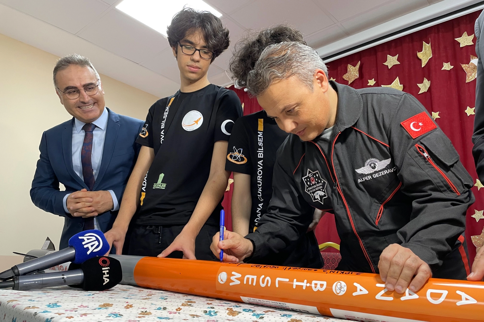 Gezeravcı, İstiklal İlkokulu'nda da Yüreğir Bilim ve Sanat Merkezi Roket Takımı öğrencilerinin hazırlamış olduğu rokete, Hava Kuvvetleri'nde ilk uçtuğu filonun ismi olan 'Zıpkın' adını koydu. Daha sonra Gezeravcı, roketin üstüne 'Zıpkın'a emniyetli uçuşlar' yazarak imza attı.