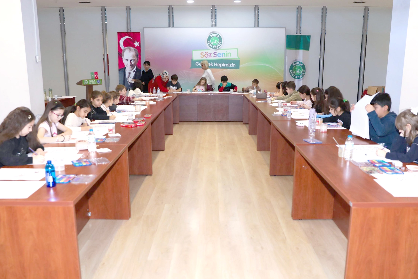 Bursa Kent Konseyi Çocuk Meclisi ve Bursa Kent Konseyi Ressamlar Çalışma Grubu iş birliğiyle düzenlenen etkinlikte, çocuklara renk uyumu, kompozisyon oluşturma ve fırça kullanımı gibi temel resim teknikleri hakkında bilgi verildi.