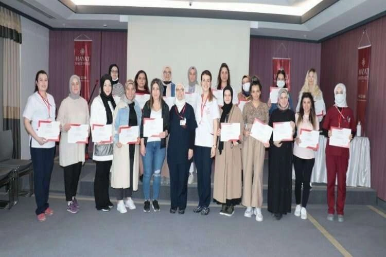 Bursa Özel Hayat Hastanesi’nin 3 ayda bir düzenlediği Gebe Okulu, mart ayında anne adaylarıyla buluştu. 3 hafta süren Gebe Okulu’nda katılımcılara eğitimin sonunda sertifika verildi. Hastane konferans salonunda 25 anne adayının katılımıyla gerçekleşen Gebe Okulu’nda, anne adaylarına gebelik ve doğum süreci ile doğum sonrasında fiziksel ve psikolojik olarak yaşayacaklarına ilişkin bilgiler paylaşıldı. Özel Hayat Hastanesi Başhekimi Uzm. Dr. Fatih Özkul, Gebe Okulu’nda 9. dönemi geride bıraktıklarını ifade ederek, “Başladığı günden bugüne yoğun ilgi gören Gebe Okulumuzun 2022 yılı ilk eğitimini tamamladık. 3 ayda bir 3 haftalık eğitim şeklinde düzenlediğimiz Gebe Okulu’nda 9. dönemde anne adaylarıyla buluştuk. Anne adaylarının yanında olmaktan mutluyuz. Hayat Hastanesi olarak anne adaylarımıza hamilelik süresince neler yaşayacaklarını, nelere dikkat etmeleri gerektiğini ve çocuğun doğumunun ardından yapılması gerekenleri uzman doktorlarımız 3 haftalık eğitimde anlattılar” dedi. Gebe Okulu’nun ilk haftasında Kadın Doğum Uzmanı Op. Dr. Nazmiye Şentürk “Gebelik ve Doğum”, Fizyoterapist Merve Evis “Gebelikte doğru duruş ve nefes egzersizi teknikleri-Gebe Platesi”, Emzirme Danışmanı Hemşire Elif Balcı “Anne Sütü” başlıkları altında anne adaylarına bilgi aktardı. Gebe Okulu’nun 2. haftasında Klinik Psikolog Nida Biçen, “Normal doğum normal bir süreçtir”, Çocuk Hastalıkları Uzmanı Dr. Erol Comart “Doğum sonrası yenidoğanın takibi”, Genel Cerrahi Uzmanı Op. Dr. Servet Yetgin “Gebelikte ve sonrasında hemoroid-safra kesesi-meme rahatsızlıkları” hakkında bilgiler verdi. Gebe Okulu’nun son haftasında ise Diş Hekimi Büşra Düzen “Gebelikte diş problemleri”, Diyetisyen Fatma Hallaç “Gebelikte ve sonrasında doğru beslenme”, Anestezi ve Reanimasyon Uzmanı Dr. Rıza Dediler “Doğum eyleminde anestezi eylemleri-Epidural-Spinal-Genel Anestezi”, Ebe Halime Şahin “Doğuma hazırlık-Doğum eylemi ve sonrasında anne ve bebeğin takibi” hakkında bilgiler paylaştı. Gebe Okulu’nun 10. dönemi, Haziran 2022 tarihinde yapılacak.