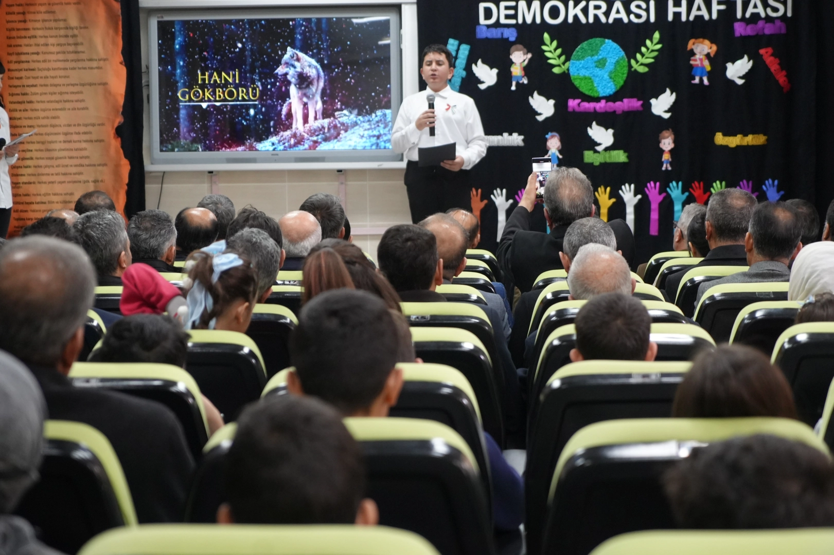 Bayburt'ta İnsan Hakları ve Demokrasi Haftası dolayısıyla Şehit Sebahattin Bozo Ortaokulu tarafından düzenlenen programda, Filistin ve Doğu Türkistan'da yaşanan insan hakları ihlallerine dikkat çekildi.