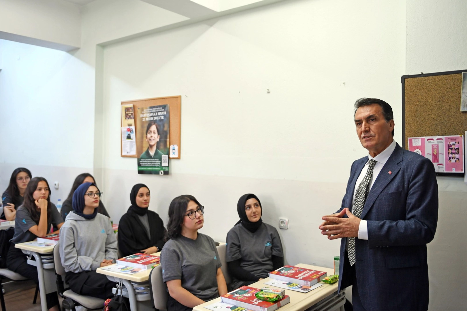TYT ve AYT Ders Bitirme Kampı formatında hazırlanan kitap setlerini Hasan Ali Yücel Anadolu Lisesi’nde öğrencilere dağıtan Başkan Dündar, “Destek bizden, başarı sizden” mesajı verdi.