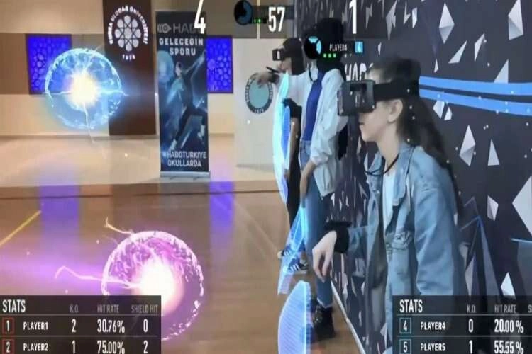 Geleceğin sporu olarak nitelendirilen Japon artırılmış gerçeklik oyunu "HADO", Bursa Uludağ Üniversitesinde öğrencilerle buluştu. Artırılmış gerçeklik gözlüklerinin yanı sıra özel olarak geliştirilen giyilebilir teknoloji ürünlerinden kol bantlarını takan öğrenciler sanal ortamda 3'er kişilik guruplar halinde oyun oynadı. Sanal gözlükler sayesinde kendilerini oyunun içinde bulan öğrenciler sanal ortamda gerçekmiş gibi kendilerine top atıp onlardan kaçmaya çalışarak oyun oynadı. Öğrencilerin karşısına çıkan Bursa Uludağ Üniversitesi Rektörü Ahmet Saim Kılavuz, onlarla sanal ortamda oyun oynadı. Sanal ortamda hareket ederek gerçekmiş gibi oyun oynayan öğrenciler, "Bugün buraya HADO sporu için geldik. Çok keyif aldık. Hem spor yaptık hem de sanal ortamda gerçekmiş gibi oyun oynadık, çok gerçekçiydi. Sanal ortamda gerçek bir oyunun içinde kendimi hissettim" dedi. Bursa Uludağ Üniversitesi Rektörü Saim Kılavuz, "İlk defa böyle bir oyun oynadım. Bu yakan top gibi bir oyun sanal oyunun gerçekle hiç bir farkı yok çok yorucuydu. Bu spor geliştikçe toplumumuzun hareket kabiliyeti gelişecek" şeklinde konuştu. Bursa Uludağ Üniversitesi Spor Koordinatörü Erkut Tutku, "Bu yeni ve etkin olan sporu üniversite öğrencilerimiz ve Bursa'ya tanıtmak için rica ettik arkadaşlarda gelip burada bu oyunu bize tanıttılar" diye konuştu. HADO Türkiye Milli Takım Antrenörü Candur Aslan, "Bu oyunu küçükken oynadığımız yakan topun gelişmiş ve versiyonu olarak söyleyebiliriz. 3'er kişiden oluşan 2 takımın karşılıklı olarak bir birlerine top atıp kaçarak yaptıkları bir spor, oyunumuz 80 saniye sürüyor" dedi.