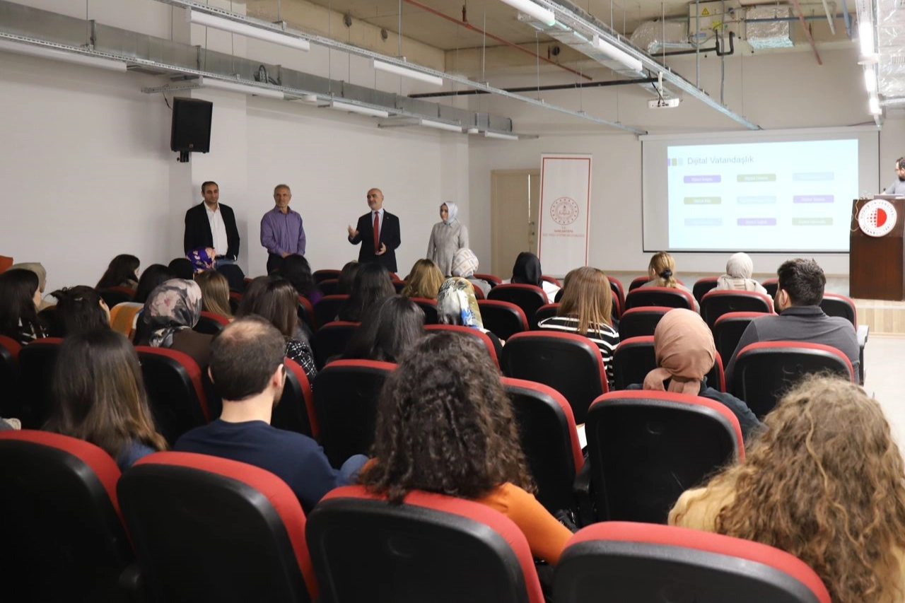 Sancaktepe İlçe Millî Eğitim Müdürlüğü, Doğuş Üniversitesi ile iş birliği yaparak 24 Kasım Öğretmenler Günü haftasında 130 aday öğretmene yönelik "Dijital Yeterlilik Eğitimi" düzenledi. Öğretmenlerin mesleki gelişimine katkı sunmayı amaçlayan dijital yeterlilik eğitimleri tamamlandı. Öğretmenlerin teknolojiye daha etkin bir şekilde entegre olmalarını sağlayarak eğitim alanındaki gelişimlerine katkıda bulunmayı hedefleyerek, dijital dönüşüm sürecinde öğretmenlerin bilgi ve becerilerini güncel tutarak öğrencilere daha etkili bir öğrenme deneyimi sunmayı amaçlayan eğitimlere öğretmenler ilgi gösterdi. Sancaktepe İlçe Millî Eğitim Müdürü Hale Bağce Özbaş ve Doğuş Üniversitesi Rektörü Prof. Dr. Turgut Özkan'ın katılımıyla iki oturum halinde gerçekleşen eğitimler, Dr. Öğr. Üyesi Başak Çakmak, Öğr. Gör. Ecem Taneri, Dr. Öğr. Üyesi Nurcan Gücüyenen Kaymak ve Öğr. Gör. Oktay Cesur tarafından verildi. Eğitimlerde "Görsel Tasarım, Etkili Sunum Hazırlama, Dijital Vatandaşlık ve Güvenlik, Ölçme Değerlendirme" konularına odaklanıldı.
