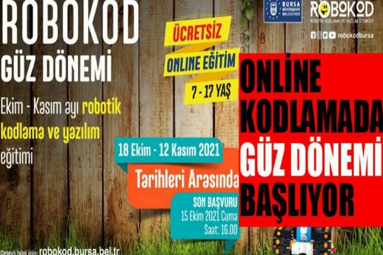 Robokod Kodlama ve Yazılım Otobüslerinde yüz yüze verilen eğitimler pandemi sebebiyle online yapılmaya devam ediyor. Ücretsiz olan eğitimler Zoom programı üzerinden online olarak yapılacak. 7-10 ve 11-17 yaş arası öğrencilerin katılabileceği eğitimler 18 Ekim - 12 Kasım tarihleri arasında 4 hafta süreyle yapılacak. Eğitimler, Kodlamaya Giriş Eğitimi (Code.org), Arduino Robotiğe Giriş ve Algoritma Eğitimi, Scratch Eğitimi olmak üzere 3 ana başlıktan oluşuyor.
