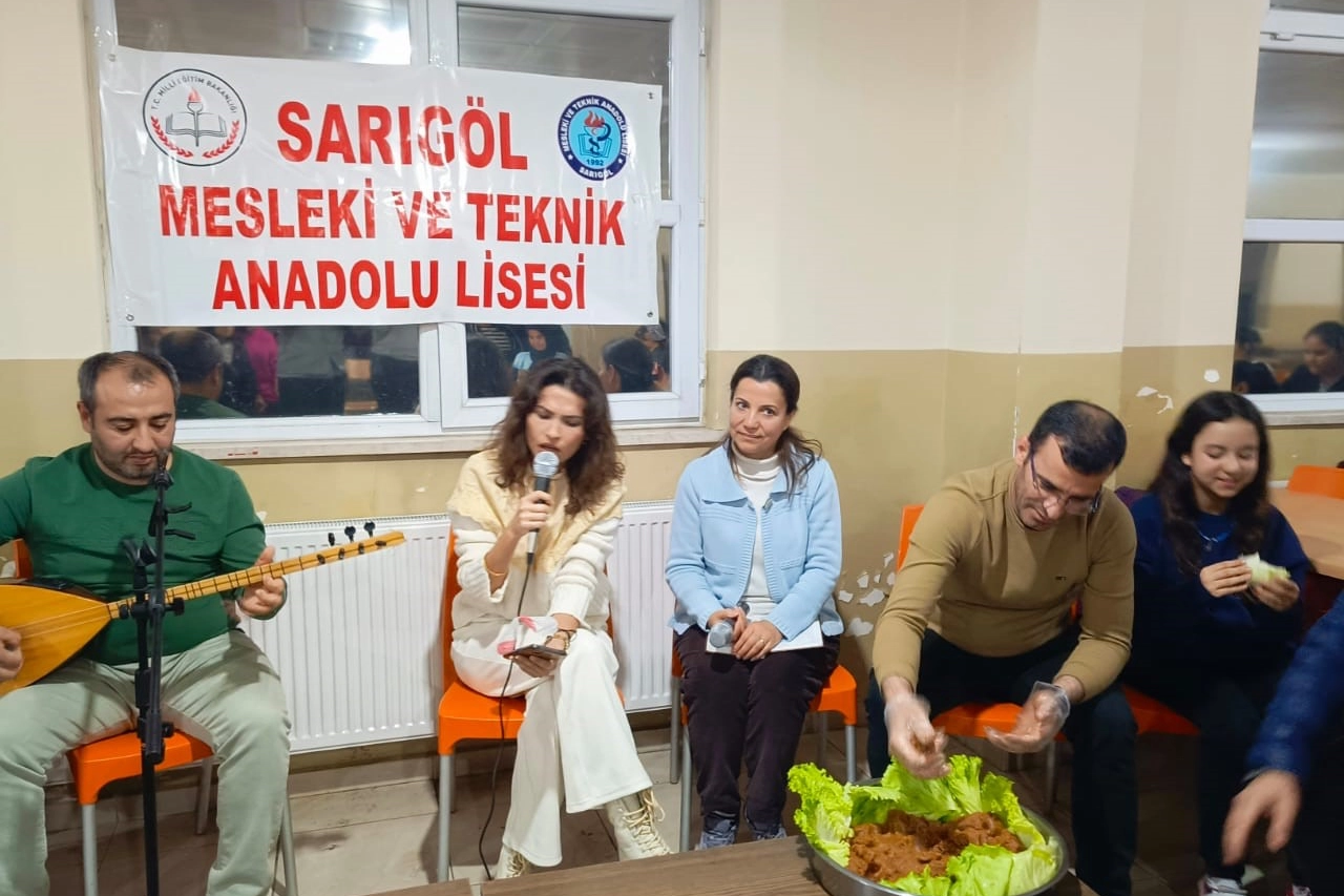 Sarıgöl İlçe Milli Eğitim Müdürü Cezmi Yıldırak’ın çiğ köfte ikramına okulun müdür yardımcıları, öğretmenleri ve pansiyonda kalan öğrenciler katıldı. Pansiyonda kalan öğrenciler bir yandan çiğ köftelerini yerken bit yandan da bağlama eşliğinde öğretmenleri Arzu Sever ve Azize Özdil'in söyledikleri birbirinden güzel türkülerle unutamayacakları bir akşam yaşadı. Öğretmen Arzu Sever ile kızı Ela Sever'in düeti ise öğrencilerden büyük alkış topladı.
