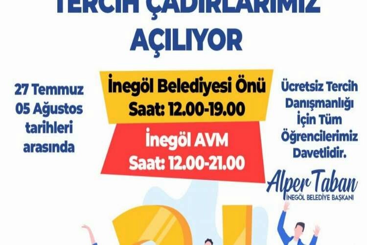 Hayatın her alanında var olan İnegöl Belediyesi, doğumdan ölüme kadar süren hizmet seferberliği çerçevesinde öğrencilerin de her an yanında. Dönem dönem öğrencilere yönelik etkinlik ve faaliyetler düzenleyen İnegöl Belediyesi, üniversite adayı öğrencileri de unutmadı. Zorlu bir sınav maratonunun ardından 27 Temmuz tarihinde başlayacak tercihler için öğrencilerin daha doğru yönlendirilmeleri adına İnegöl Belediyesi ile Milli Eğitim Müdürlüğü iş birliğinde Üniversite Tercih Çadırları kurulacak. İnegöl Belediyesi önü ve İnegöl AVM olmak üzere 2 noktada kurulacak olan tercih çadırları, 05 Ağustos’a kadar sürecek tercih dönemi boyunca hizmet verecek. İnegöl Milli Eğitim Müdürlüğü tarafından görevlendirilen uzman eğitimciler nezaretinde öğrencilerin en doğru tercihleri yapabilmeleri için fikir alışverişinde bulunacak. Belediye Başkanı Alper Taban, yarın itibariyle iki noktada kurulacak tercih çadırlarına ilişkin açıklama yaparak tüm öğrencileri bu alanlardan faydalanmaya davet etti. Başkan Taban, iki ayrı noktada üniversite tercih çadırları kurulacağını kaydederek; “Milli Eğitim Müdürlüğümüzle iş birliği yaparak öğrencilerimizin geleceğini etkileyecek bu kararda en doğru adımı atmaları adına yanlarında olmak istedik. Bu nedenle hem İnegöl Belediyesi önünde hem de İnegöl AVM’de iki ayrı tercih çadırı kuracağız. Belediye binamız önündeki çadır 12.00 ile 19.00 arasında, İnegöl AVM’deki çadırımız ise 12.00 ile 21.00 arasında hizmet verecek. Tercih döneminin son günü olan 05 Ağustos’a kadar hafta sonu da dahil olmak üzere 10 gün boyunca tercih çadırlarımız açık olacak. Tüm öğrencilerimizi ücretsiz danışmanlık hizmetinden faydalanmak üzere tercih çadırlarımıza bekliyoruz” dedi.