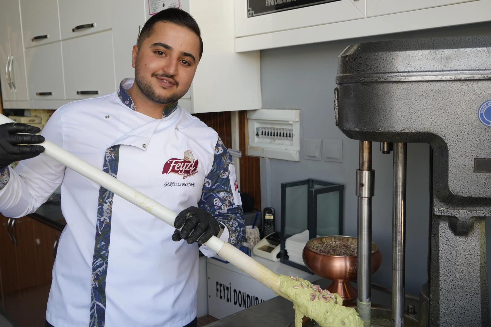Gaziantep'te dondurma sektöründe faaliyet gösteren genç dondurmacı Deniz Doğan, hem geçmişe dayanan köklü bir geleneği yaşatıyor hem de gelecek nesillere bu lezzeti aktarmaya hazırlanıyor. Baba mesleğini sürdüren genç girişimci, yaklaşık 8 yıldır bu işin içinde yer aldığını ve markayı daha da ileriye taşımak için var gücüyle çalıştığını ifade etti. Gaziantep'in simgelerinden biri haline gelen Antep fıstıklı dondurma ise bu geleneğin merkezinde yer alıyor. Coğrafi işaretli Antep fıstığının dondurmada kullanılmasının 35-40 yıllık bir geçmişi olduğunu belirten işletme sahibi, bu lezzetin şehirle özdeşleştiğini vurguladı. Türkiye'de sık sık gündeme gelen "dondurma kime ait?" tartışmalarına da açıklık getiren işletmeci Doğan, dondurmanın, özellikle fıstıklı dondurmanın, Maraş ile bir ilgisi olmadığını söyledi.
