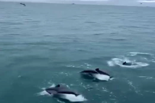 Sinop açıklarında avlanan balıkçılara eşlik eden yunus balıkları sürüsü, denizde görsel şölen oluşturdu. O anlar balıkçılar tarafından cep telefonu kamerasıyla kaydedildi. Sinop açıklarında avlanma faaliyetini sürdüren bir balıkçı teknesinin çevresinde yunus balığı sürüsü görüldü. Denize ağ atan balıkçıların yanına gelen yunuslar, teknenin etrafında bir süre tur atarak su yüzeyine çıktı. Renkli görüntülerin oluştuğu o anlarda yunuslar, teknenin hızına eşlik ederek adeta görsel bir şov sundu. Yaklaşık birkaç dakika boyunca teknenin çevresinden ayrılmayan yunus sürüsü, daha sonra gözden kayboldu. Balıkçıların büyük ilgiyle izlediği o doğal anlar, anbean kayıt altına alındı.