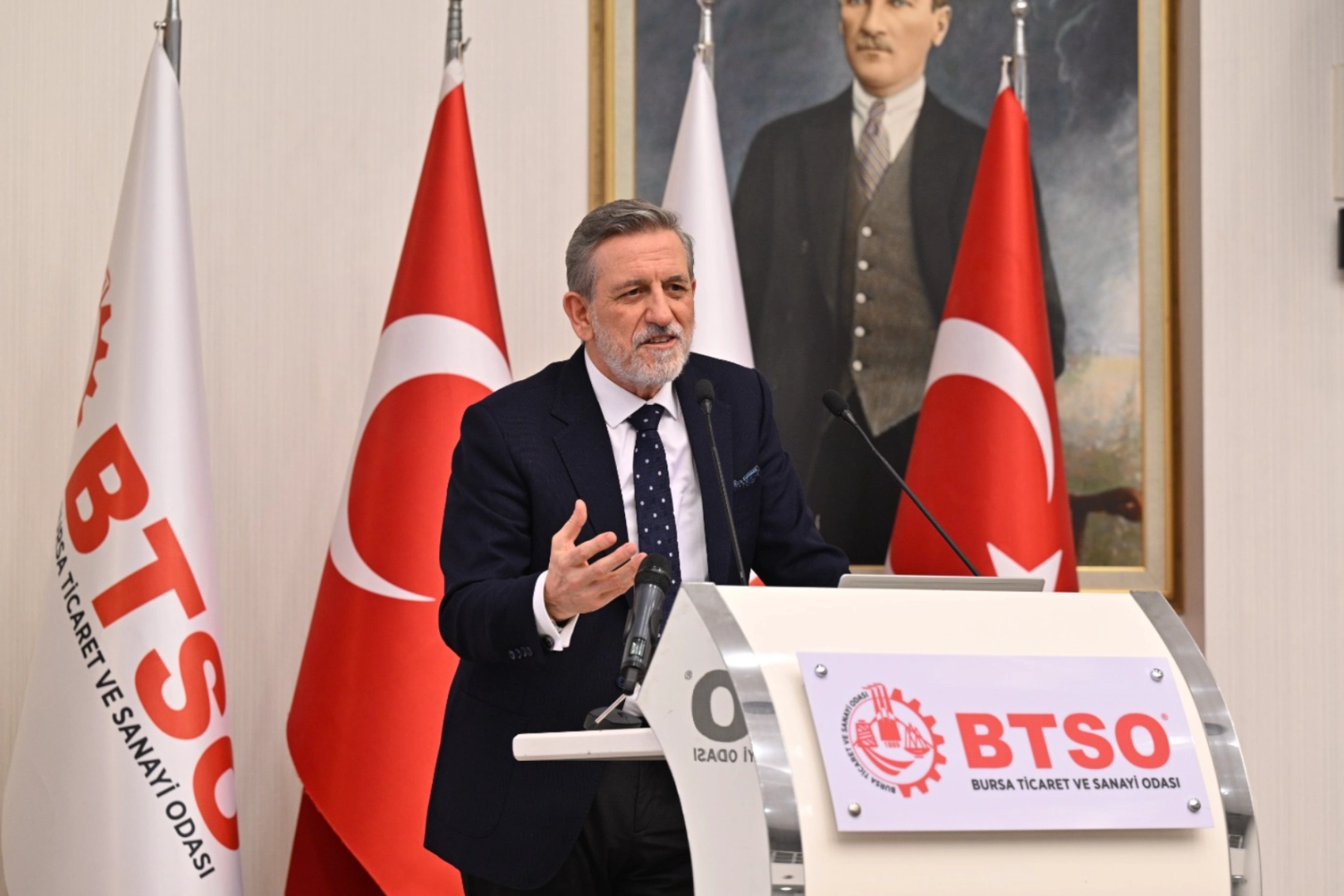BTSO Başkanı İbrahim Burkay, BASDEC iftarında yaptığı konuşmada, "BASDEC, güçlü tedarik zinciri ve yenilikçi projeleriyle Bursamızı savunma ve havacılık sanayisinde küresel ölçekte konumlandıran öncü bir yapıdır. Şehrimizin üretim gücü ve inovasyon kapasitesi, milli teknoloji hamlemizi daha da ileri taşıyacaktır" dedi. Burkay, Bursa'nın savunma sanayisindeki potansiyelinin dünya çapında tanınacağını belirterek, bu alandaki yatırımların ve projelerin şehre büyük katkı sağlayacağını ifade etti.