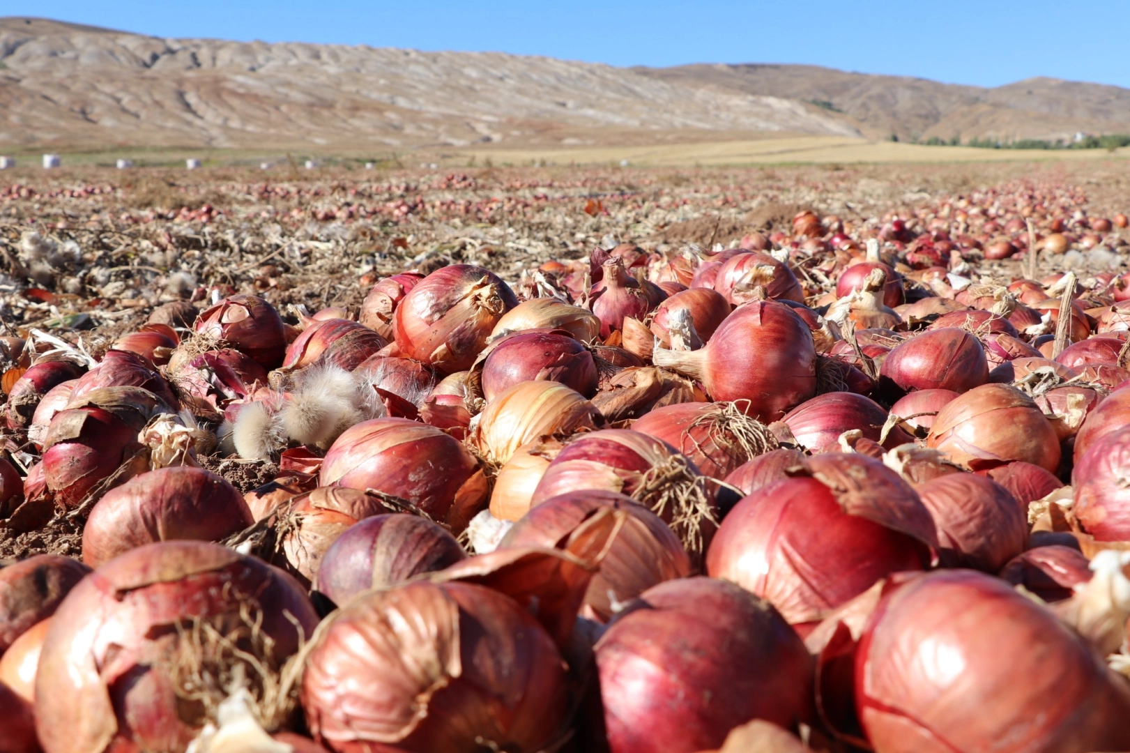 Rekolte yüzleri güldürdü Soğan üreticisi Adem Topal, “Yaklaşık 5 yıldır Sivas'ın Şarkışla ilçesinde soğan üretimi yapmaktayım. Bu yıl 550 dönüme ekim yaptık. Rekoltemiz çok iyi. Yaklaşık 250 dönüm Çorum moru dediğimiz mor soğan 300 dönüm ise beyaz soğanımız var. Beyaz soğanları iç piyasada pazarlıyoruz. Kırmızı soğanları da Dubai'ye gönderiyoruz” dedi.