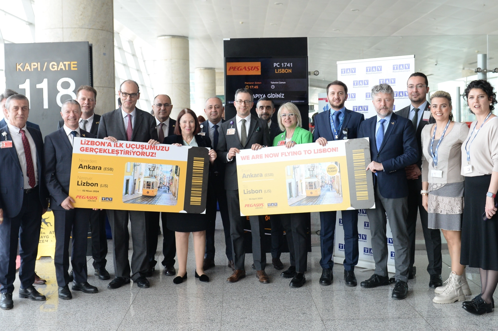 Uçuş ağını her geçen gün genişleten Pegasus Hava Yolları, Ankara-Lizbon uçuşlarını başlatarak iki başkenti birbirine bağlıyor. ''Türkiye’nin dijital hava yolu'' sloganıyla faaliyet gösteren Pegasus, Ankara-Lizbon uçuşlarını başlatarak iki başkenti birbirine bağlıyor. Ankara Esenboğa Havalimanı’ndan Lizbon’a haftada 3 frekans düzenlenecek seferlerin ilki 2 Nisan 2024 tarihinde gerçekleştirildi. Şirketin Portekiz’deki ilk noktası olan Lizbon’a Ankara’dan gerçekleştireceği uçuşların biletleri 89,99 eurodan başlayan fiyatlarla satışa sunuldu. Pegasus Hava Yolları Ticaret Genel Müdür Yardımcısı Onur Dedeköylü ve Pegasus yetkililerinin katılımıyla ilk uçuşa özel olarak Ankara Esenboğa Havalimanı’nda gerçekleştirilen törene; Portekiz Büyükelçiliği’nden Misyon Şefi Yardımcısı João Macedo ve Ekonomi ve Ticaret Müsteşarı Celeste Mota ile birlikte SHGM Hava Ulaştırma Daire Başkanı Mehmet Sefa Ceyhan, Esenboğa Havalimanından Sorumlu İl Emniyet Müdür Yardımcısı Yavuz Doğan, TAV Esenboğa Havalimanı Genel Müdürü Nuray Demirer ve TAV Esenboğa Havalimanı Genel Müdür Yardımcısı Alp Karayalçın da katıldı.