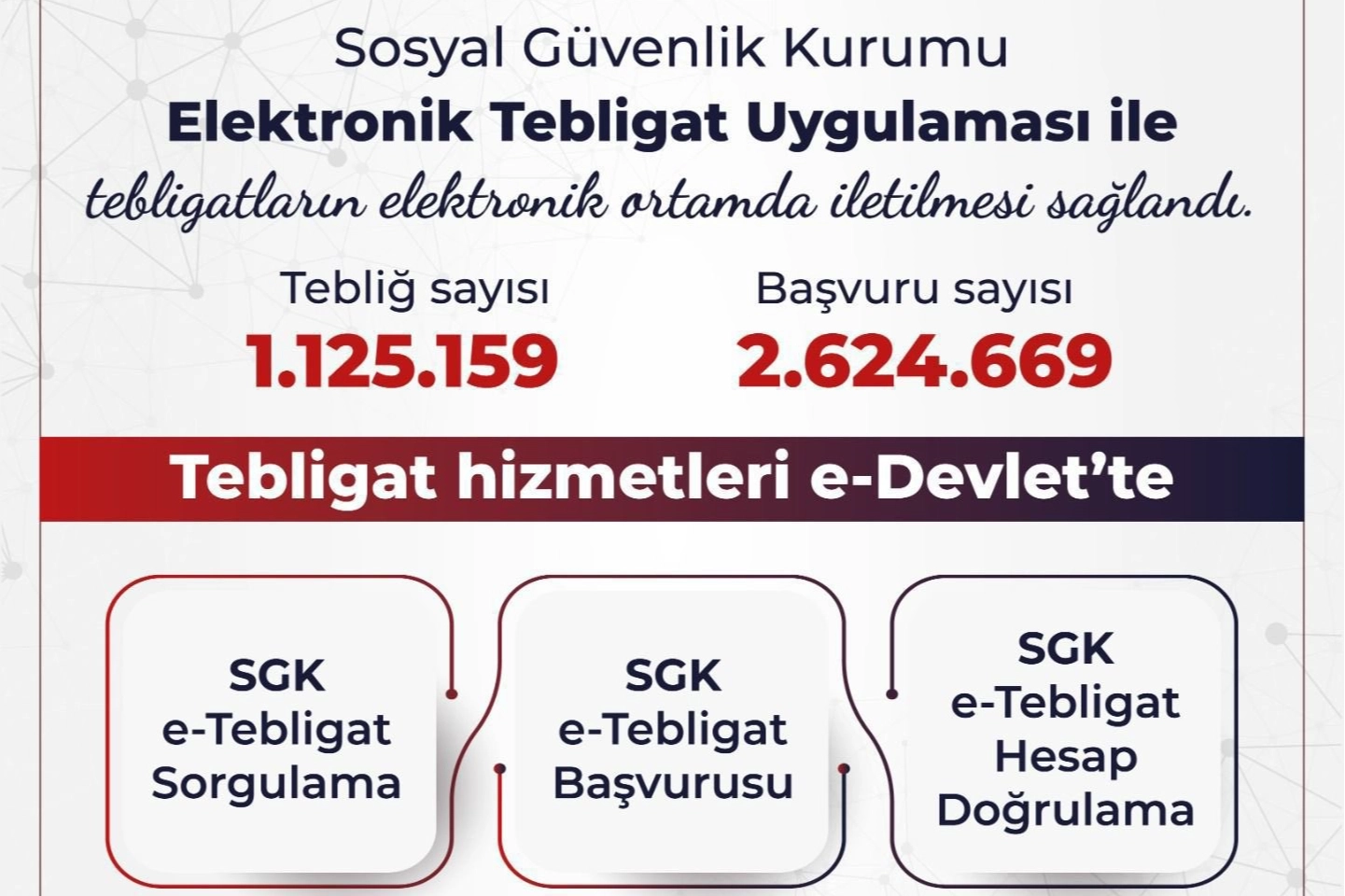Çalışma ve Sosyal Güvenlik Bakanı Vedat Işıkhan sosyal medya hesabından yaptığı paylaşımda, SGK Elektronik Tebligat Uygulaması ile tebliğ edilmesi gereken evrakların elektronik ortamda imzalanarak tebligat adreslerine kolaylıkla iletilebilmesini ücretsiz sağladıklarını hatırlattı.