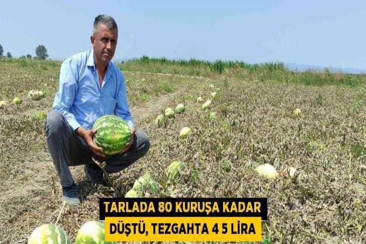 Bursa’da sezonu tarlada 3 liradan açan karpuzun fiyatı 80 kuruşa kadar düştü.