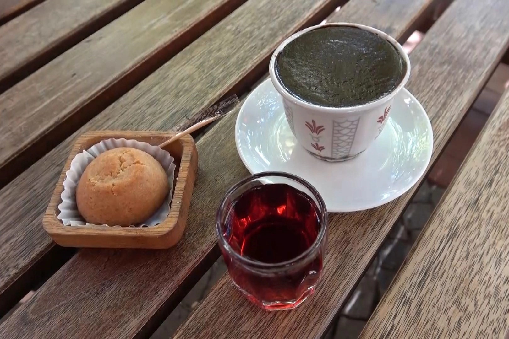 İsli kahve olarak bilinen kahve 13 farklı bitkilerin karışımından oluşuyor. Fincan içerisinde pişirilen kahvenin telvesi ise batmayarak üzerinde servis ediliyor.