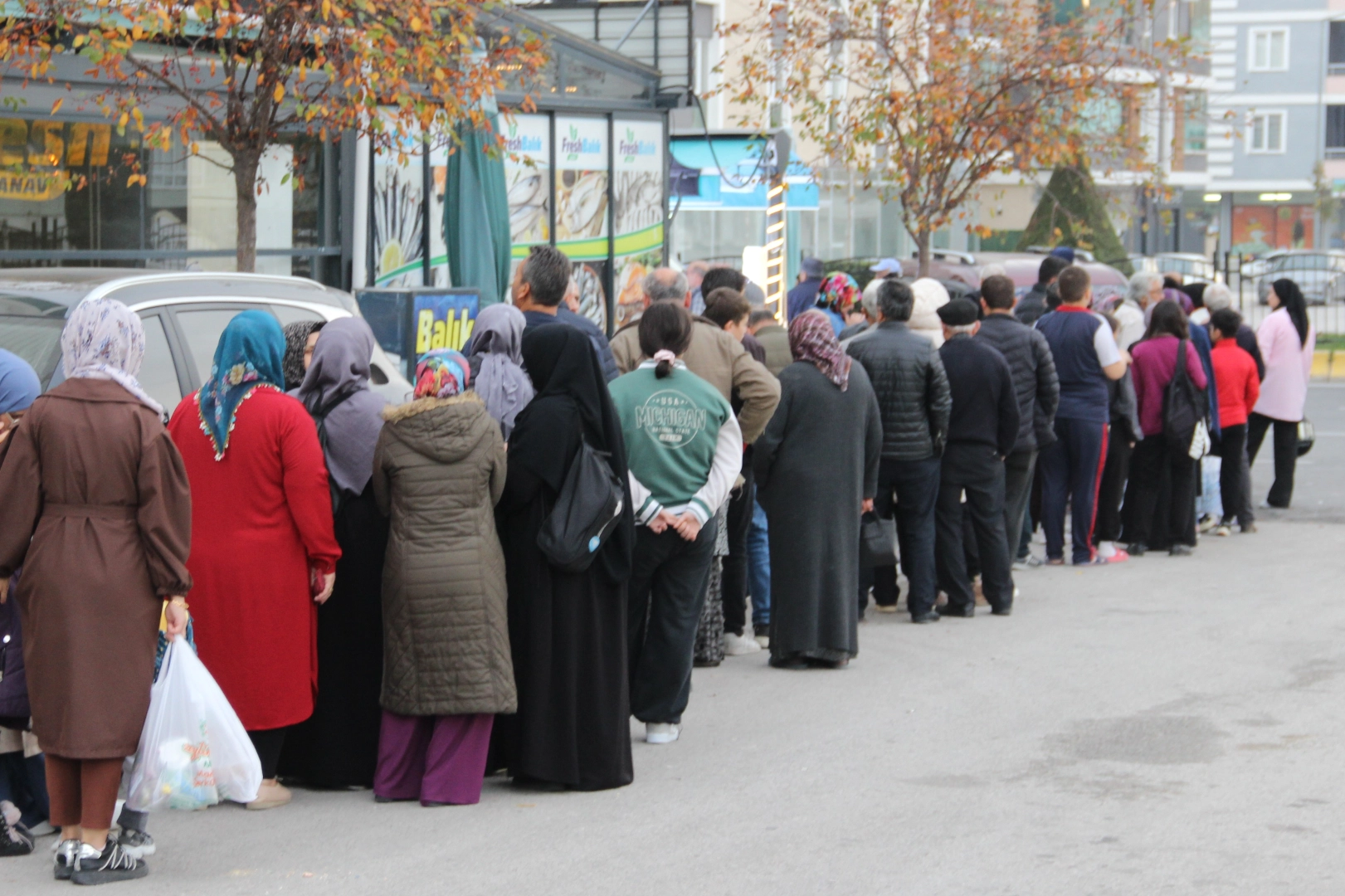 Çorum'da kilogramı 40 TL'ye düşen hamsiden satın almak isteyen vatandaşlar balıkçı önünde metrelerce uzunlukta kuyruk oluşturdu.