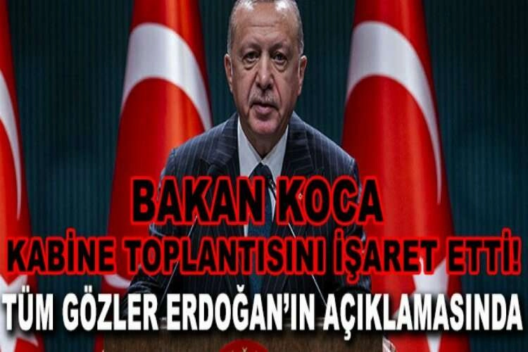 KABİNE TOPLANTISI NE ZAMAN YAPILACAK?Bakan Koca'nın açıklamaları sonrası gözer Cumhurbaşkanlığı Kabine Toplantısı'na çevrildi. Kritik toplantının 1 Mart pazartesi günü yapılması beklenirken, kabine toplantısının hangi gün ve tarihte düzenleneceğine dair henüz resmi bir açıklama yapılmadı.