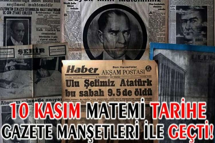 Türkiye Cumhuriyeti'nin kurucusu Ulu Önder Mustafa Kemal Atatürk'ün 10 Kasım 1938'de ebediyete intikalini, gazeteler yıldırım baskılarla halka duyurdu, büyük acı, duygu yüklü sözlerle manşetlerine taşındı.