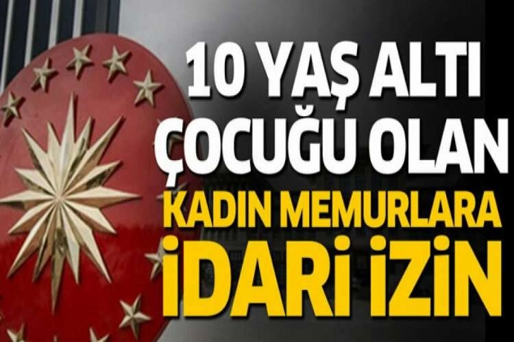 "20 ŞUBAT'A KADAR İDARİ İZİN VERİLEBİLECEK"Cumhurbaşkanlığı İdari İşler Başkanlığı kararına göre; kamuda çalışan ve 10 yaş altında çocuğu olan kadınlara idari izin verilebilek.