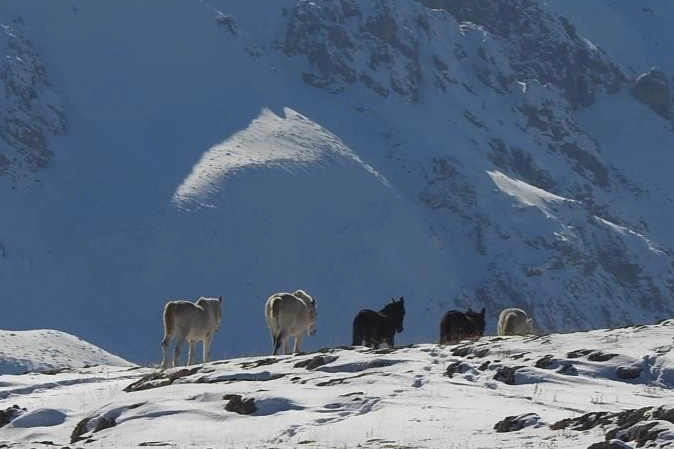 Zorlu doğa şartlarında yaşam mücadelesi veren yılkı atları, özellikle kış aylarında yem bulabilmek için zaman zaman köy ve ilçe merkezlerine yakın ovalara inerek karınlarını doyurmaya çalışıyor. Fotoğraf tutkunları tarafından kayda alınan yılkı atları, bir süre sonra bölgeden uzaklaşarak yeniden doğal yaşam alanlarında gözlerden kayboldu.