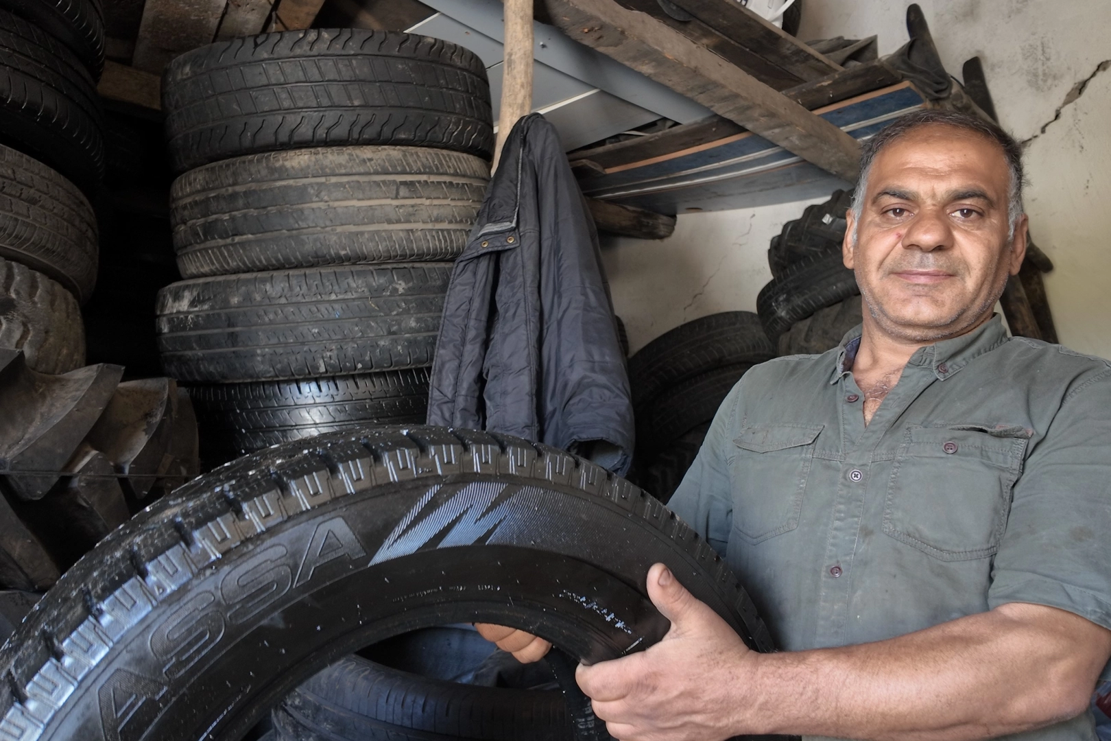 Siirt'te yaşayan 50 yaşındaki İbrahim Öztaş, 35 yıldır oto lastik tamiri yapıyor.