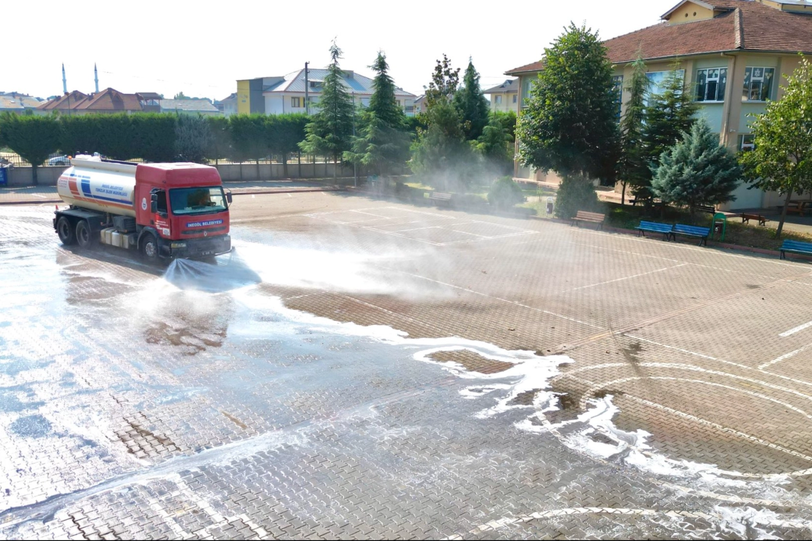 Başkan Alper Taban paylaşımında, ''Okullarımızı yeni döneme hazırlıyoruz. Yıkama ve ot biçme çalışmalarımız.'' dedi ve ''#İnegölHerŞeyeDeğer'' etiketini de paylaşımın sonuna koymayı ihmal etmedi.