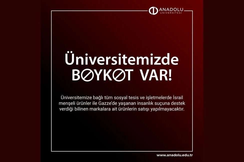 İsrail'in Gazze Şeridi'ne yönelik başlayan abluka ve saldırılarının ardından 1 ay geride kalırken, saldırılar devam ediyor. Birçok sivilin hayatını kaybettiği saldırılarda ambargo altında kalan Filistin halkı insani ihtiyaçlarını karşılamakta zorluk çekiyor. Çeşitli ülkelerden, ambargo uygulanan Filistin'e insani yardım malzemeleri ulaştırılmaya çalışılırken, bazı firmaların da yaşanan saldırılara ekonomik anlamda destek verildiği biliniyor. Eskişehir'de ve Türkiye'nin dört bir yanından vatandaşlar ise bu firmaların boykot edilmesi gerektiğini vurgulanırken, bu sabah Eskişehir Teknik Üniversitesi, bünyesinde bulunan sosyal tesis, kantin ve yemekhanelerde Filistin'de yaşanan insanlık suçuna ekonomik anlamda destek verdiği bilinen tüm firmalara ait ürünlerin satışının yapılmaması kararı alındığına dair bir bilgilendirme yayımladı. Bu çerçevede Anadolu Üniversitesi de sosyal medya hesabından bu kararı destekler nitelikte bir paylaşım yaptı. Yapılan paylaşımda, ‘Üniversitemize bağlı tüm sosyal tesis ve işletmelerde İsrail menşeli ürünler ile Gazze’de yaşanan insanlık suçuna destek verdiği bilinen firmalara ait ürünlerin satışı yapılmayacaktır’ ifadelerine yer verildi.
