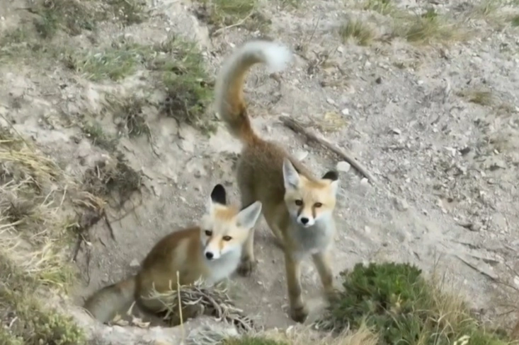 Uzun süre havadan kaydedilen görüntülerde tilki ailesinin ekseriyâ yılan avlayarak beslendiği tespit edildi. Etraftan gelen sesleri tehlike olarak algıladıklarında ise hızlıca yuvalarına sığındıkları anlar dikkat çekti.