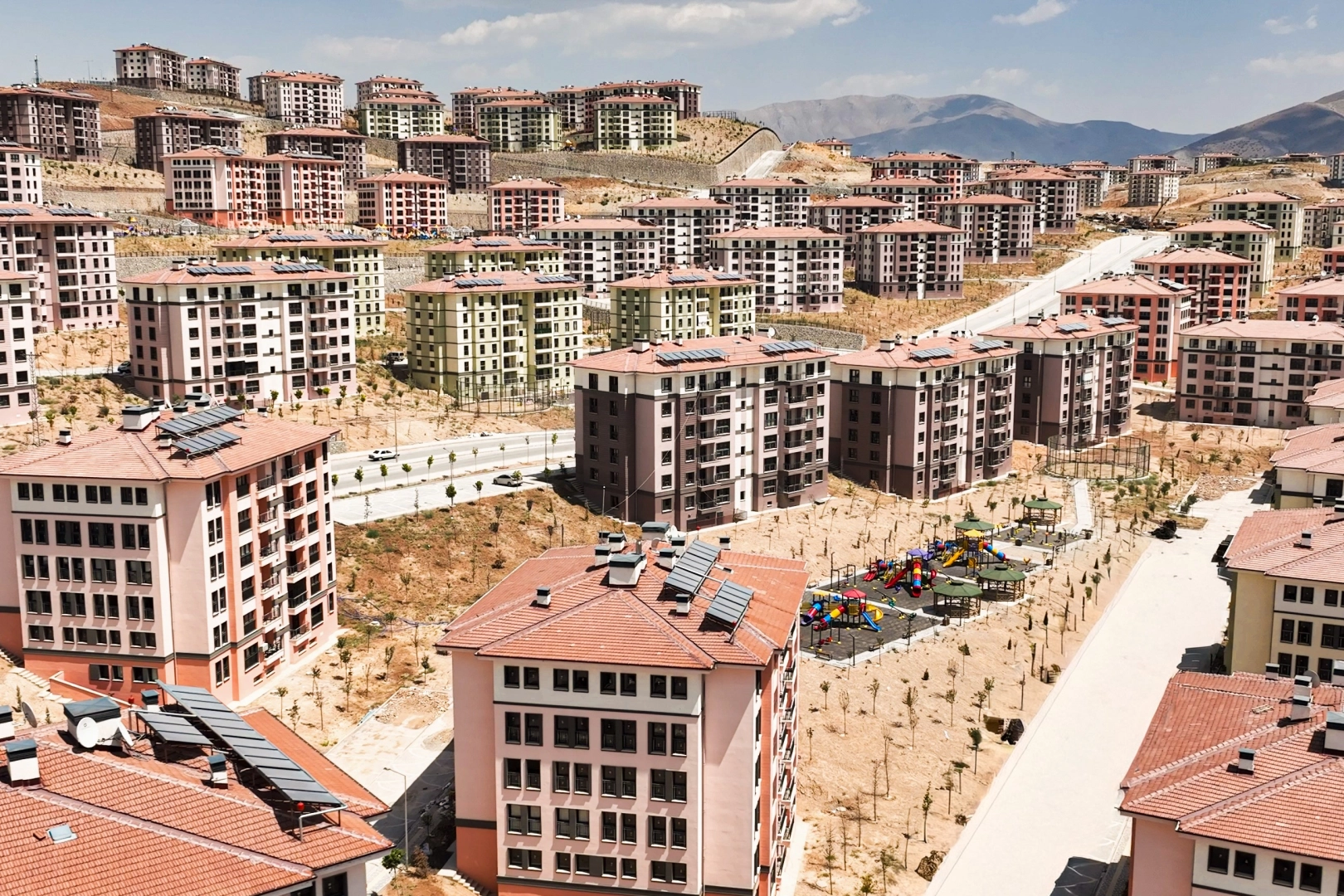 İşte deprem bölgesindeki son durum" mesajıyla paylaştı. Kahramanmaraş Pazarcık merkezli 7,7 ve Elbistan merkezli 7,6 büyüklüğündeki depremlerin ardından başlatılan asrın inşa seferberliği artık tamamlanıyor. 6 Şubat 2023’te meydana gelen depremlerin ardından 45’nci günde ilk temelin atılmasıyla başlayan çalışmalar Çevre, Şehircilik ve İklim Değişikliği Bakanlığı koordinesinde Toplu Konut İdaresi Başkanlığı (TOKİ), Emlak Konut GYO, İLBANK ve Yapı İşleri Genel Müdürlüğü ile; 11 ilde 174 ayrı alandaki 3 bin 481 şantiyede 200 bin mimar, mühendis ve işçi ile yürütülüyor. "Türkiye’nin en büyük şantiyeleri uydu kentlere dönüyor" Depremde en ağır yıkıma uğrayan iller Türkiye’nin en büyük şantiyeleriyle yeniden ayağa kalkıyor. TOKİ, Türkiye’nin en büyük şantiyesi olan Malatya’nın Yeşilyurt ilçesine bağlı İkizce Mahallesi’nde 5 milyon 730 bin metrekare alanda 27 bin 628’i konut 661’i iş yeri olmak üzere toplam 28 bin 289 bağımsız bölümü tamamlıyor. Emlak Konut GYO ise Adıyaman İndere’de 700 futbol sahası kadar alana denk gelen 5 milyon metrekare alanda 16 bin 467’si konut, 355’i iş yeri olmak üzere toplam 16 bin 822 ev ve iş yerini teslim etmek için gün sayıyor. Yine TOKİ, Antakya’nın Dikmece Mahallesi’nde 4 milyon 952 bin metrekarelik alanda kurulu olan deprem bölgesinin en büyük üçüncü şantiyesinde 14 bin 489 konutun yapımını bitiriyor. Deprem bölgesinde artık her devasa şantiye yerini örnek uydu kentlere, modern ve sağlam yapılara bırakıyor.