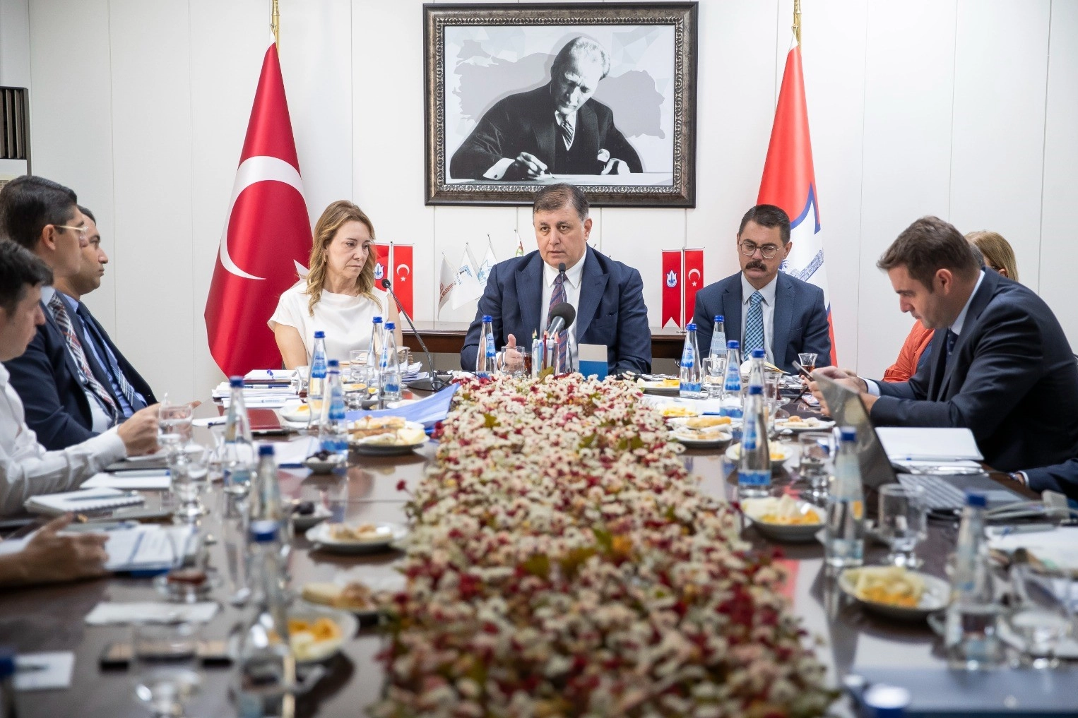 Toplantıya İzmir Büyükşehir Belediyesi Genel Sekreteri Barış Karcı, Genel Sekreter Yardımcıları Prof. Dr. Pınar Okyay, Zeki Yıldırım ve Çağatay Güç, ESHOT Genel Müdürü Turgay Bozoğlu, İzmir Büyükşehir Belediyesi ve İZSU bürokratları katıldı.