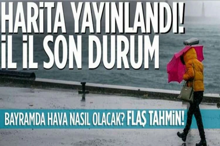 Ramazan Bayramı'nda hava durumunun nasıl olacağı merak edilirken, Meteoroloji Genel Müdürlüğü son hava tahminlerini yayımladı. Yapılan son değerlendirmelere göre başta İstanbul, Ankara ve İzmir olmak üzere yurdun büyük bölümünde yağışlı hava etkili olacak. Ankara Valiliği başta olmak üzere birçok kentte de sağanak yağış uyarısı yapıldı, vatandaşlar meydana gelebilecek olumsuzluklara karşı uyarıldı.